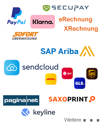 - Zahlarten, z.B.: PayPal Plus, Klarna, Sofortüberweisung, per Rechnhung, per Vorkasse, …